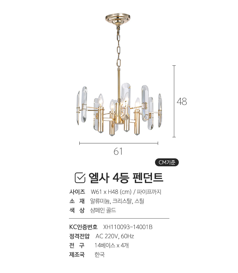 W61 xD52 x H48 (cm) / 체인 기본 1m 출고 / 체인 연장,축소 가능