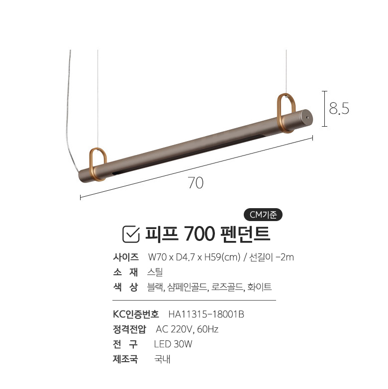 사이즈 W70 x D4.7 x H8.5(cm) / 선길이 2m / 무게 0.9kg