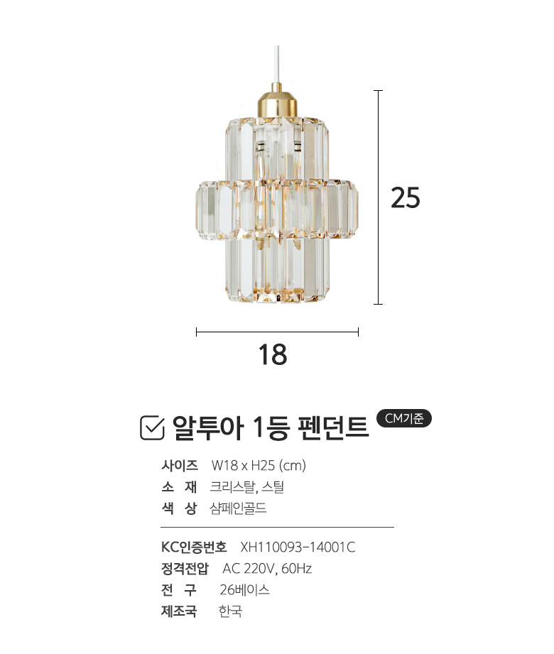 W18 x H25 (cm) / 선길이 1m / 1.4kg(크리스탈 바디만)