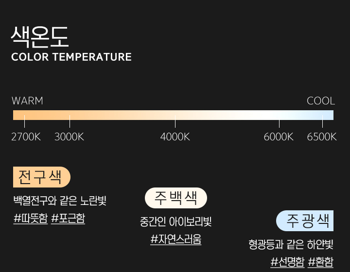 주백색(아이보리빛), 주광색(하얀빛)