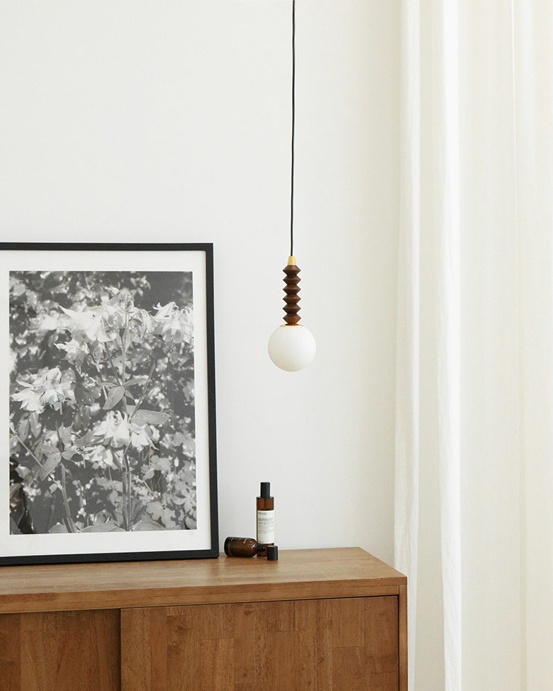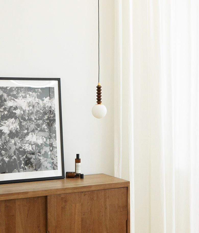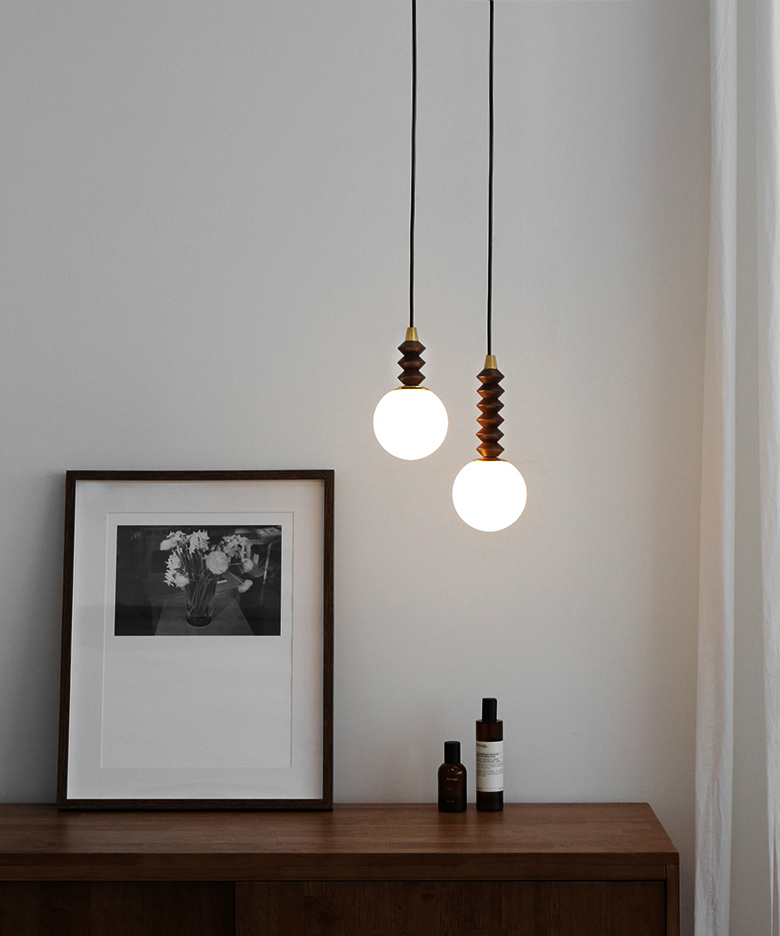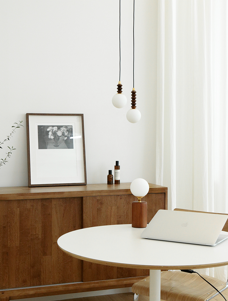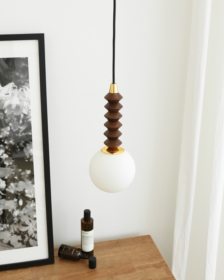 볼글래스 위에 월넛 우드자식이 더해져