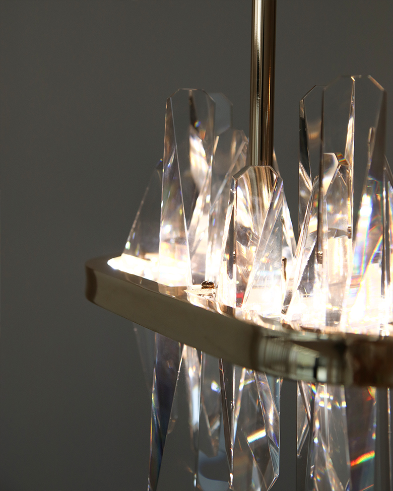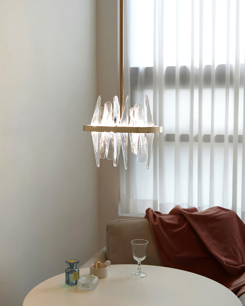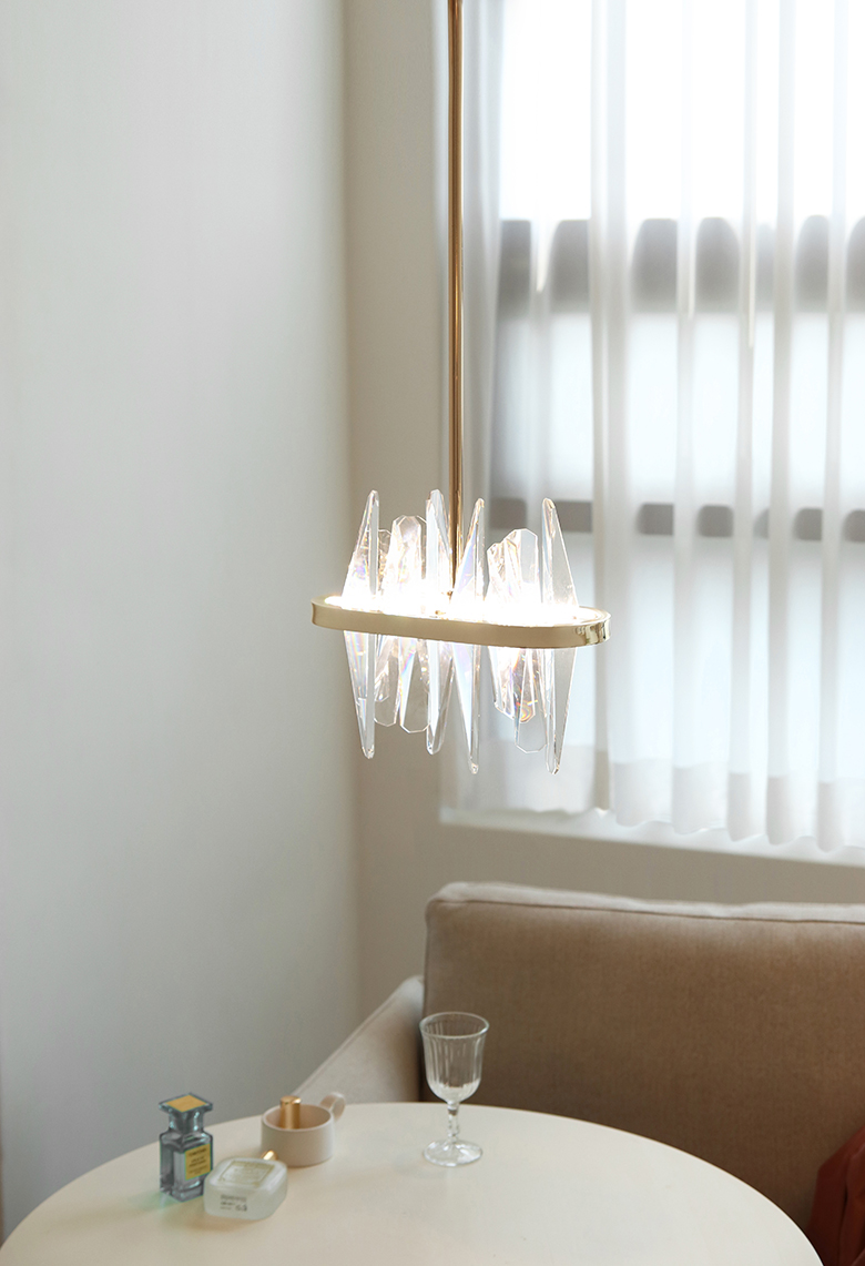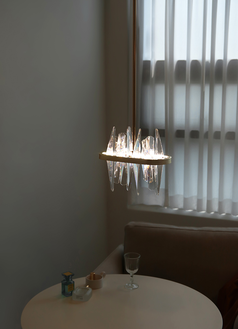 불을 켰을때 크리스탈을 통해 반사되는 빛들이