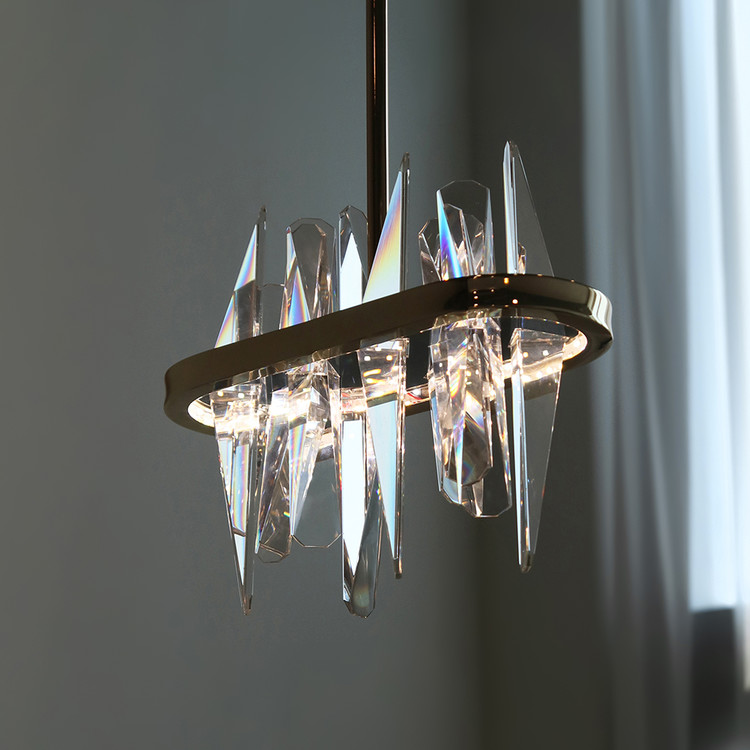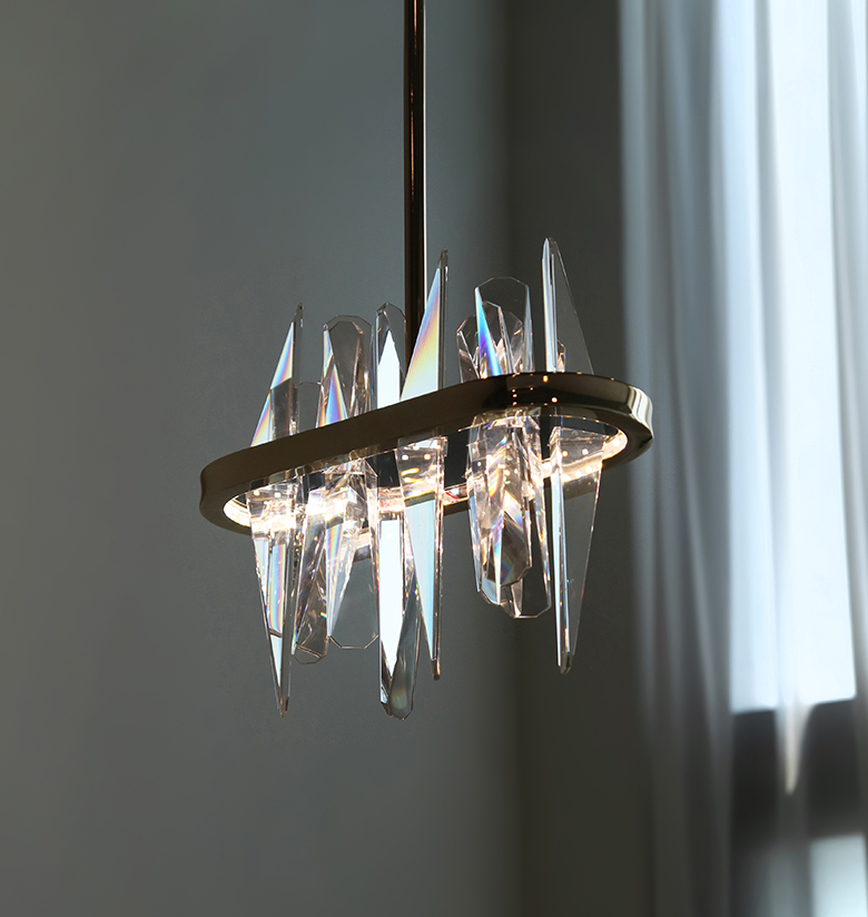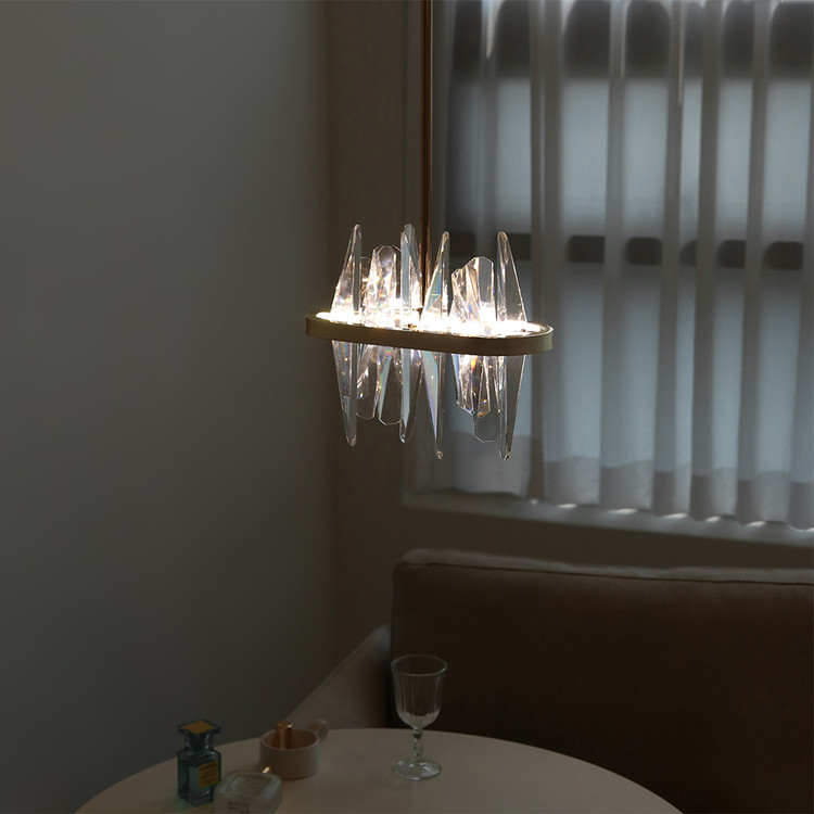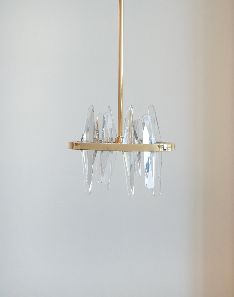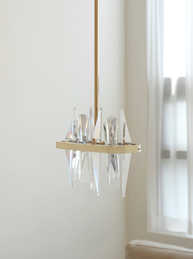 불을 켰을때 크리스탈을 통해 반사되는 빛들이
