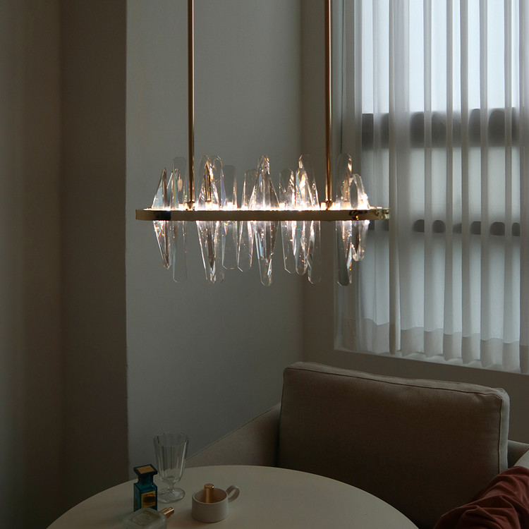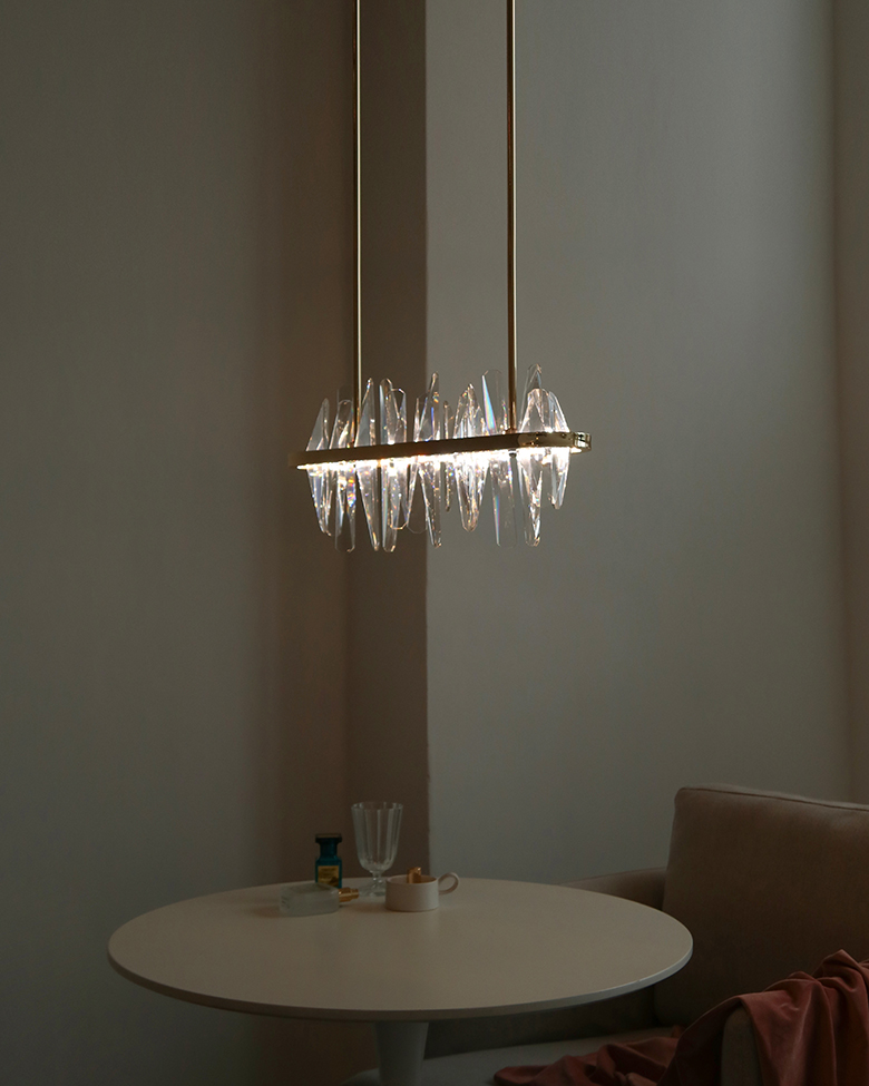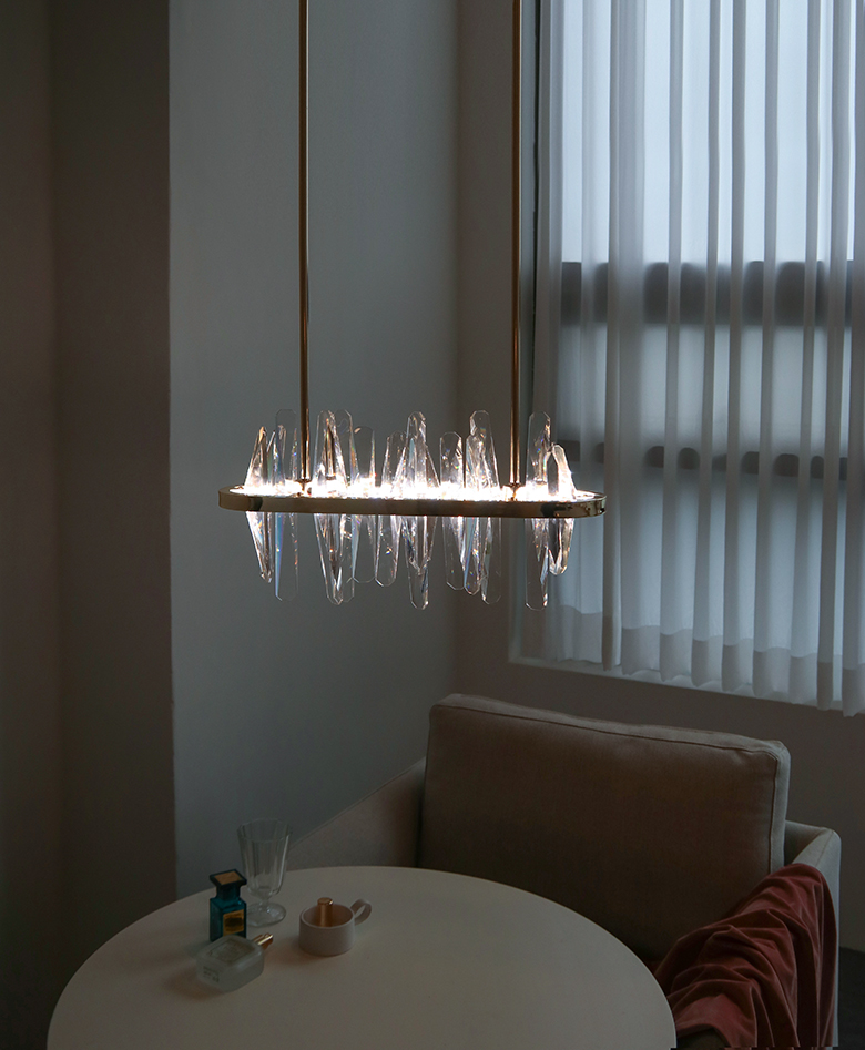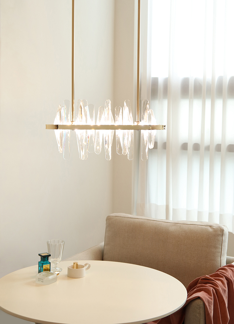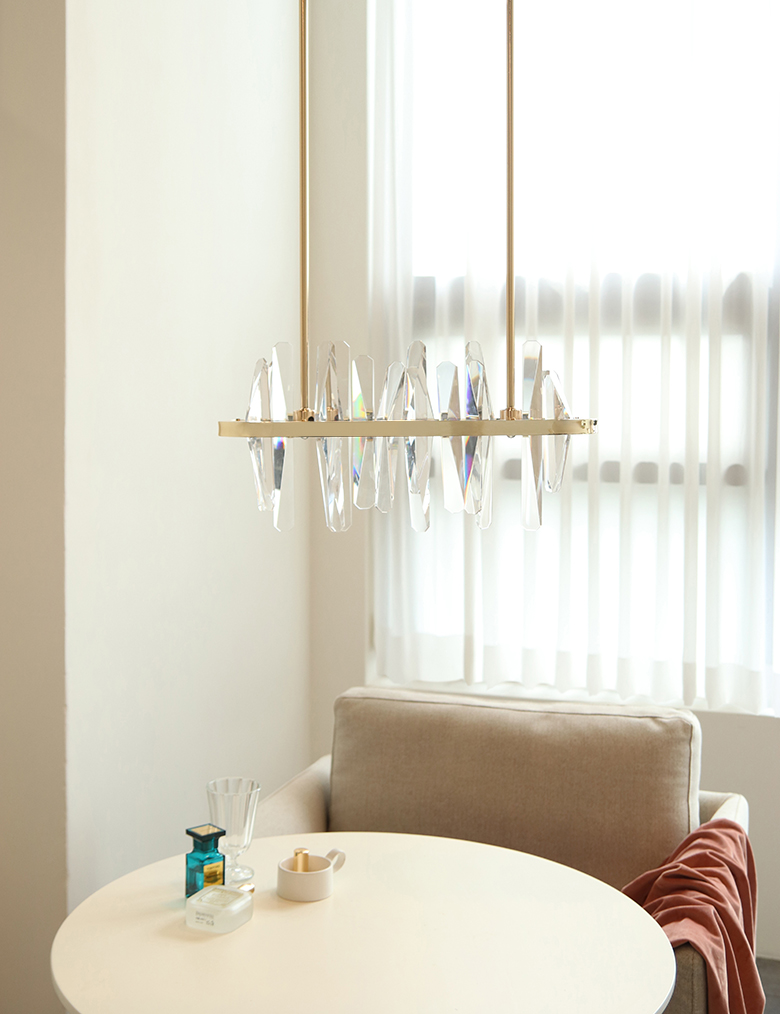 불을 켰을때 크리스탈을 통해 반사되는 빛들이