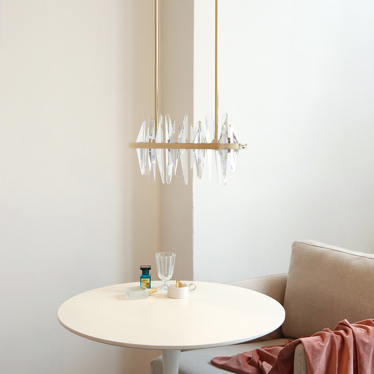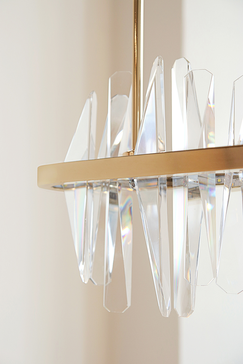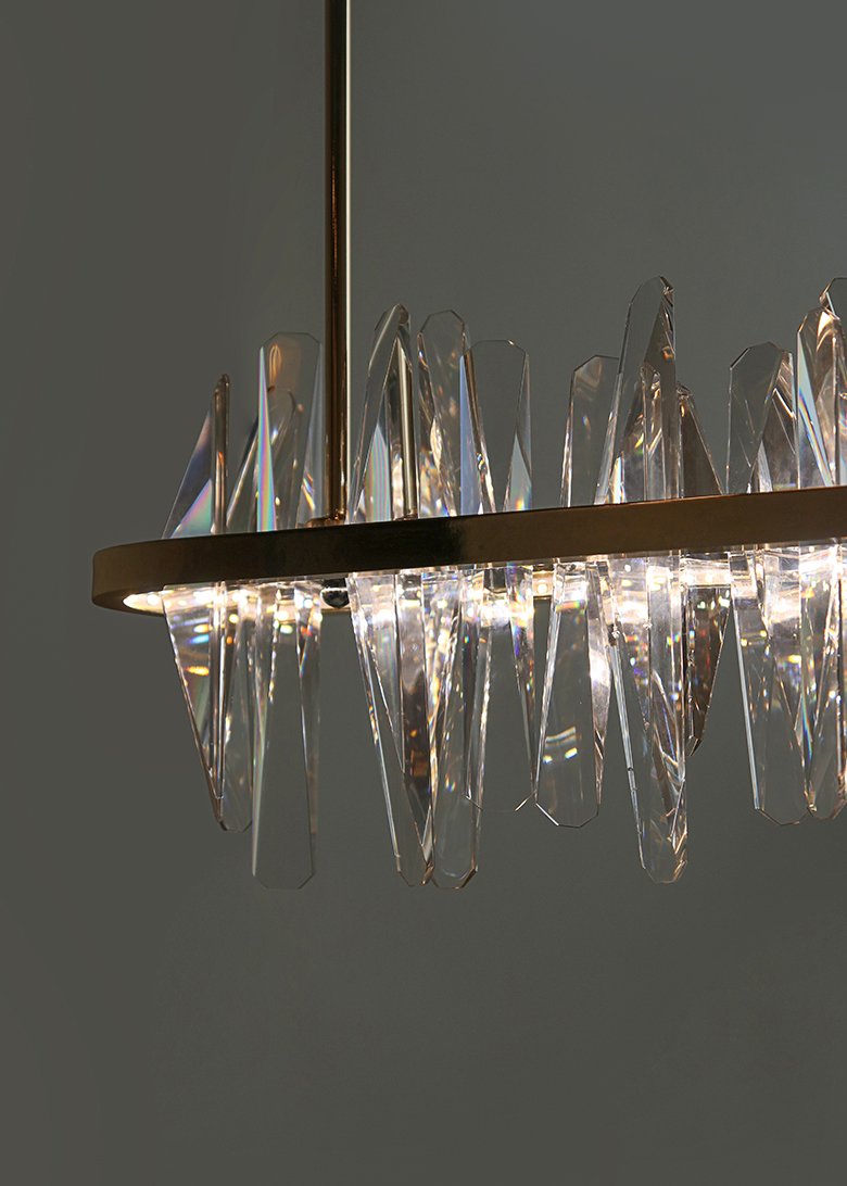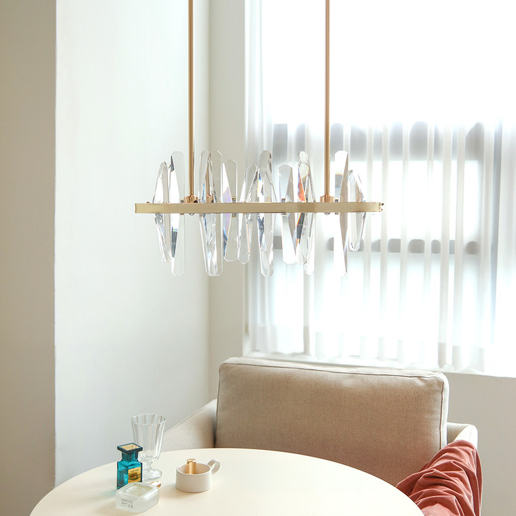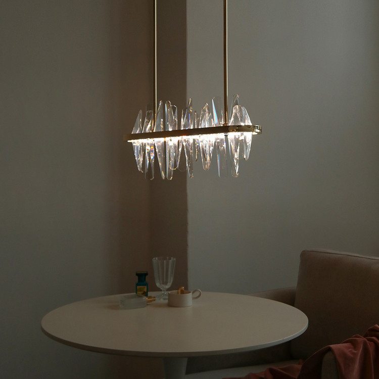 불을 켰을때 크리스탈을 통해 반사되는 빛들이