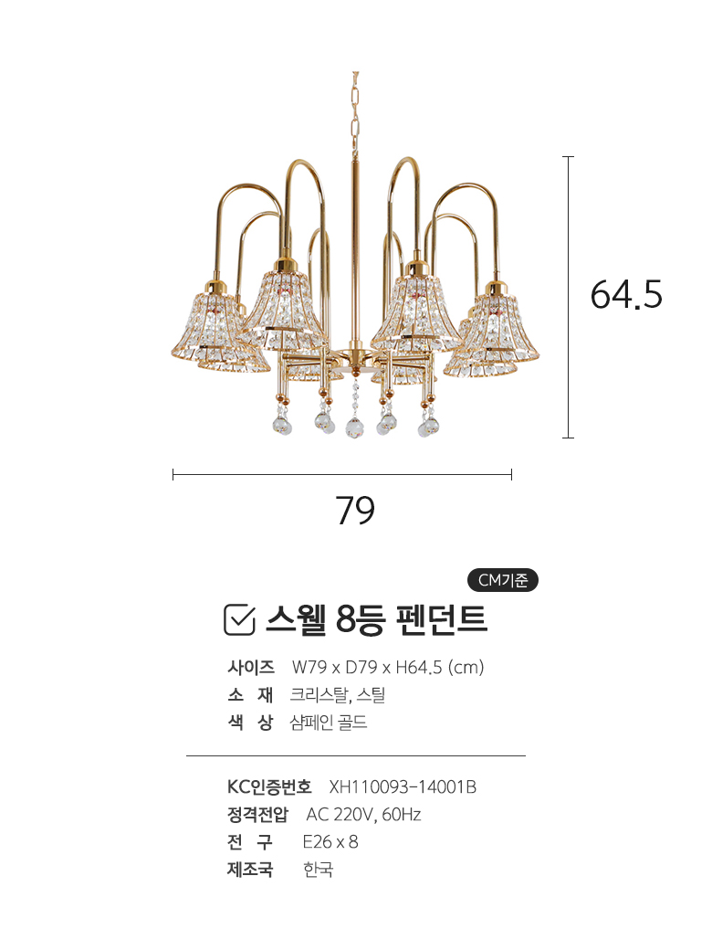 동시에 아름다움이 느껴지는 스웰 샹들리에 입니다.